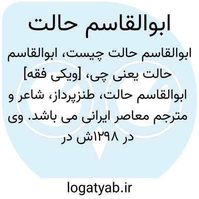[ویکی فقه] ابوالقاسم حالت، طنزپرداز، شاعر و مترجم معاصر ایرانی می باشد. وی در ۱۲۹۸ش در تهران به دنیا آمد.