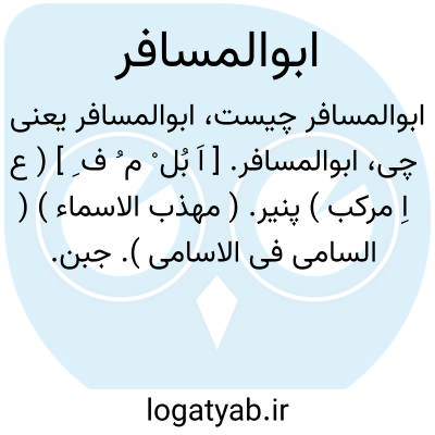 ابوالمسافر. [ اَ بُل ْ م ُ ف ِ ] ( ع اِ مرکب ) پنیر. ( مهذب الاسماء ) ( السامی فی الاسامی ). جبن.