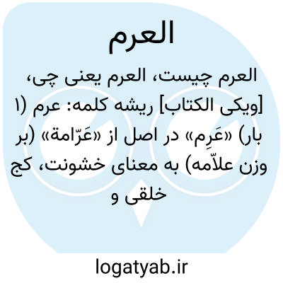 (به فتح عین و کسر راء). عَرْم (بر وزن فلس) به معنی کندن است در قاموس و اقرب الموارد هست: «عَرَمَ الْعَظْمَ: نَزَعَ ما عَلَیْه مِنْ لَحْمٍ» یعنی آنچه گوشت در استخوان بود کند. به نظر من «سَیْلَ الْعَرِمِ» اضافه موصوف بر صفت است و عرم به معنی منهدم کننده و ویران کننده می‏باشد یعنی: قوم سباء از فرمان حق اعراض کردند در نتیجه سیل منهدم کننده را برایشان فرستادیم و دو باغ آنها را به دو باغی که دارای میوه تلخ و شوره گز و اندکی کُنار بود مبدل کردیم. عرم را مسنّاة که به معنی سیل بند است گفته‏اند و نیز باران تند (المطر الشدید) و جُزَر (بر وزن صرد) که نوعی موش است و خُلْد (بر وزن قفل) (موش کور) معنی کرده‏اند ایضاً آن را جمع عرمه که به معنی سدّ است مثل کلم و کلمه و همچنین جاهل و بدخلق موذی گفته‏اند. در نهج البلاغه خطبه 231 در وصف زمان فرموده: «فَتاهُمْ عارِمٌ» یعنی جوانانشان بد خلق است در نهایه درباره عاقر ناقه صالح آمده: «فَاَنْبَعَثَ لَها رَجُلٌ عارِمٌ» یعنی مرد خبیث و شریری برای کشتن آن ناقه به پاخاست. و نیز نقل شده: مردی به ابی‏بکر گفت: «عارَمْتُ غُلاماً بِمَکَّةَ فَعَّضَّ اُذُنی فَقَطَعَ مِنْها» یعنی در مکه با پسری مخاصمه کردم گوش مرا به دندان گرفت و قسمتی از آن را برید. باید «سَیْلَ الْعَرِمِ» بدین معانی باشد یعنی منهدم کننده، طغیان کننده. در مجمع از ابی اعرابی آن را سیل طاقت فرسا نقل کرده است. سیل عرم که آبادیهای قوم سباء را منهدم و آنها از هستی ساقط نمود یکی از مشهورات تاریخ است، در دائرة المعارف و جدی و غیره نقل شده است نام سدّی که سیل آن را منهدم کرد سدّ مأرب از آن قوم سباء بود و آن میان دو کوه بلق بنا شده و از همه سدّها پرآب‏تر بود. در تفسیر برهان و المیزان از کافی از امام صادق «علیه السلام» نقل شده که درباره قوم سباء فرمود: آنها مردمی بودند، قریه‏های متصل به هم داشتند، نهرهای روان و اموال داشتند، نعمتهای خدا را کفران کردند. عافیتی که داشتند تغییر دادند خداوند نعمت آنها را تغییر داد «اِنَّ اللّهَ لا یُغَیِّرُ ما بِقَوْمٍ حَتّی یُغَیِّرُوا ما بِاَنْفُسِهِمْ» خداوند سیل عرم را بر آنها فرستاد قریه‏هایشان را پراکنده و دیارشان را خراب نمود. اموالشان را از بین برد و دو باغ آنها را به دو باغی که میوه تلخ و شوره گز و اندکی کُنار داشت تبدیل نمود بعد فرمود: «ذلِکَ جَزَیْناهُمْ بِما کَفَرُوا وَ هَلْ نُجازی اِلّا الْکَفُورَ». راجع به جزئیات سدّ مأرب به فرهنگ قصص قرآن تألیف آقای صدر بلاغی مادّه «سَبَاء» رجوع شود که راجع به نقشه و جریان آن و کاوش باستان شناسان به تفصیل سخن گفته شده است. و نیز در این کتاب به «سباء» رجوع شود. عَرْو: (بر وزن فلس) رسیدن. در اقرب الموارد آمده:. این آیه جواب قوم هود است که به آن حضرت گفتند: جز این نگوئیم که بعضی از خدایان ما به تو آسیبی رسانده است. این فعل یکبار بیشتر در قرآن مجید نیامده است. اصل آن چنانکه در «عروه» خواهد آمد به معنی تعلق است در نهج البلاغه خطبه اول درباره شیطان آمده: «اِعْتَرَتْهُ الْحَمِیَّةُ» حمیت به او متعلق شد و رسید. عُروة: دستگیره. دستاویز. عروه آفتابه و دلو معلوم است اهل آن چنانکه در مجمع تصریح شده به معنی تعلّق است. در اقرب الموارد گفته: «اَلْعُرْوَةُ مِنَ الدَّلْوِ وَ الْکُوز: المقبض ای اذنهما و کل ما یؤخذ بالید من حلقة فهو عروة».،. در این دو آیه ایمان به خدا و توجّه به خدا توأم با نیکوکاری، چنگ زدن به دستگیره محکم نامیده شده در آیه اول قید «لَانْفِصامَ لَها» نیز ذکر شده. حقّا که ایمان به خدا و توجه به خدا با نیکوکاری، دستگیره محکمی است که قطع شدن ندارد، این کلمه فقط دوبار در قرآن مجید آمده است، جمع عروه عُری است.
