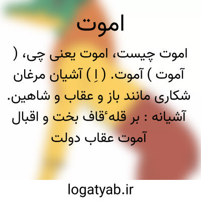 ( آموت ) ( اسم ) آشیان مرغان شکاری مانند باز و عقاب آشیانه: بر قل. قاف بخت و اقبال آموت عقاب دولت تست ( منجیک ).
