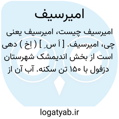امیرسیف. [ اَ س ِ ] ( اِخ ) دهی است از بخش اندیمشک شهرستان دزفول با 150 تن سکنه. آب آن از رودخانه و محصول آن غلات است. ( از فرهنگ جغرافیائی ایران ج 6 ).