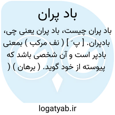 بادپران. [ پ َ ] ( نف مرکب ) بمعنی بادپر است و آن شخصی باشد که پیوسته از خود گوید. ( برهان ) ( آنندراج ) ( انجمن آرا ). بادپر و فیاش. ( ناظم الاطباء ). لاف زن. رجوع به بادبر و بادپر شود: