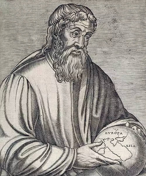 جغرافی دان و مورخ یونانی. مسافرت هایی بسیار برای جمع آوری منابع بلاواسطۀ جغرافیایی صورت داد. کتاب جغرافیای او مهم ترین اثر جغرافیایی دوران باستان است که مؤلف در آن به رویدادهای تاریخی هم اشاره کرده است. این کتاب از منابع مهم تاریخ اشکانیان است.