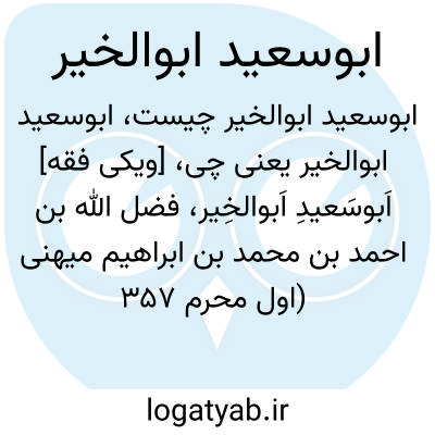 [ویکی فقه] اَبوسَعیدِ اَبوالخِیر، فضل الله بن احمد بن محمد بن ابراهیم میهنی (اول محرم ۳۵۷ ـ ۴ شعبان ۴۴۰ق/ ۷ دسامبر ۹۶۷ ـ۱۲ژانویه ۱۰۴۹م)، عارف بنام خراسانی، منسوب به میهنه، از قرای مشهور خاوران در میانه سرخس و ابیورد است.