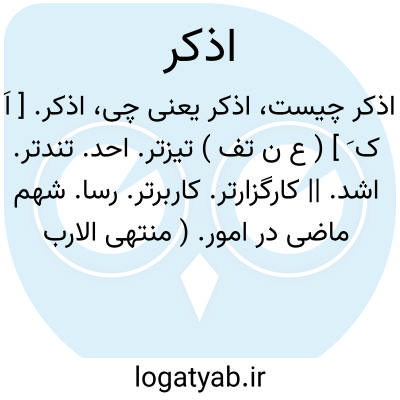 اذکر. [ اَ ک َ ] ( ع ن تف ) تیزتر. احد. تندتر. اشد. || کارگزارتر. کاربرتر. رسا. شهم ماضی در امور. ( منتهی الارب ).