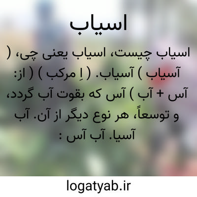 ( آسیاب ) آسیاب. ( اِ مرکب ) ( از: آس + آب ) آس که بقوت آب گردد، و توسعاً، هر نوع دیگر از آن. آب آسیا. آب آس: