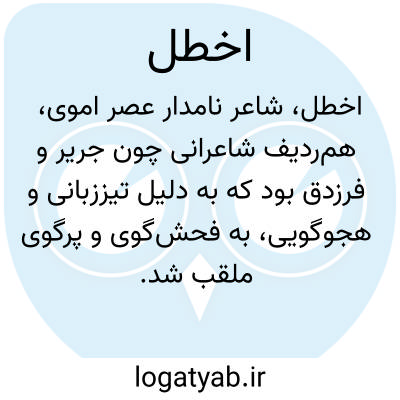 [ویکی فقه] اخطل شاعر نامدار عصر اموی هم ردیف جریر و فرزدق بود که به سبب درازی زبان و هجوگویی، به فحش گوی و پرگوی لقب گرفته است. وی به درخواست یزید بن معاویه، انصار را هجو می گفت و بر مرگ یزید نیز مرثیه سرود. وی از نصرانیان مونوفیزی (معتقد به طبیعت واحد مسیح) بود و به خدمت حکام اموی درآمد و همانند دیگر افراد قبیله خود به یاری امویان برخاست و آنان را مدح گفت. شعر او را شاید بتوان نخستین گونه شعر سیاسی در ادب اسلامی دانست.