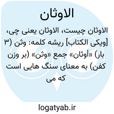 بت. جمع آن اوثان است در مصباح گوید: خواه از سنگ باشد یا چوب یا غیر آن. از پلید به دور باشید که بتهااند و از قول باطل اجتناب کنید، اوثان در سوره عنکبوت 17 و 25 نیز آمده است. در نهج البلاغه خطبه 145 فرموده: «فَبَعَثَ مُحَمَّداً «صلی الله و علیه واله» و سَلَّمَ بِالْحَقِ لِیُخْرِجَ عِبادَهُ مِنْ عِبادَةِ الْاَوْثانِ اِلَی عِبادِتِهِ» محمد عبده در شرح آن گفته «وَثَنَ فُلانٌ بِالْمَکانِ» یعنی: در مکانش ثابت و دائم شده صَنَم را از آن وَثَن گفته‏اند که نصب شده و دریک حال ثابت است. کلبی در کتاب الاصنام ص 53 نقل کرده: بت اگر بصورت انسان از چوب یا طلا یا نقره باشد صنم نامند و اگر از سنگ باشد وثن گویند.ناگفته نماند این سخن با آنچه گفته شد مناسبت دارد.