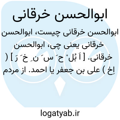 ابوالحسن خرقانی. [ اَ بُل ْ ح َ س َ ن ِ خ َ رَ ] ( اِخ ) علی بن جعفر یا احمد. از مردم خرقان بسطام. یکی از مشایخ کبار صوفیه. تولد او در 352 و وفات روز سه شنبه دهم محرم 425 هَ. ق. به هفتادوسه سالگی. کرامات بسیار از او نقل کنند. و بعضی گفته اندخرقان از قراء سمرقند است. دو رباعی ذیل از اوست: