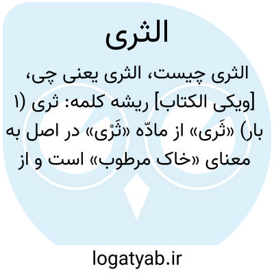 خاک. ارباب لغت آن را خاکتر معنی کردهاند در مجمع و اقرب الموارد، خاک مرطوب گفتهاند و غیر آن معنی نیز آمده است ولی از نهج البلاغه روشن میشودکه معنی آن مطلق خاک است برای خداست آنچه در اسمان و زمین و آنچه در میان آن دو و آمچه در نزدیک خاک است. در نهج البلاغه آمده «وَ یَطُولُ فِی الثَّری حُلُولُها» خطبه 223 «وَدُفْنِتَ تَحْتَ الثَّری» نامه 41 «وَاَکَلَتْهُمُ الْجَنادِلُ وَالثَّری» خطبه 224. پیداست که مراد از آنها مطلق خاک است. «ثری فقط یک دفعه در قرآن آمده است.