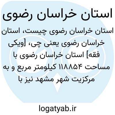 [ویکی فقه] استان خراسان رضوی با مساحت ۱۱۸۸۵۴ کیلومتر مربع و به مرکزیت شهر مشهد نیز با مصوبه دولت در سال ۱۳۸۳ خورشیدی و پس از تقسیم استان خراسان به سه استان ایجاد شد. افزودن واژه رضوی به نام این استان از سوی دولت کنونی، به افتخار وجود آرامگاه هشتمین امام از امامان شیعه به نام امام رضا علیه السلام در مرکز این استان صورت گرفته است. این استان بطور کلی دارای شرایط آب و هوایی معتدل و سرد کوهستانی است. تعداد کل جمعیت استان بر اساس آمار سرشماری عمومی نفوس و مسکن در سال ۱۳۸۵ تعداد ۵،۵۹۳،۰۷۹ نفر بود.