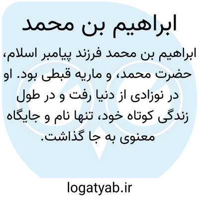 تنها فرزند ذکور رسول خدا (ص). مادرش ماریۀ قبطیه کنیزی مصری بود که مقوقس حاکم مصر او را همراه با خواهرش، سیرین، و هدایایی دیگر در پاسخ نامۀ پیامبر اکرم (ص) که او را به اسلام دعوت کرده بود، به حضور آن حضرت فرستاد. او اسلام آورد و پیامبر (ص) از وی صاحب فرزندی شد که نامش را ابراهیم نهاد. او بیش از شانزده یا هجده ماه عمر نکرد و در خردسالی از دنیا رفت. پیامبر (ص) در مرگ او سخت غمگین شد و گریست. مردم به تعجب از او پرسیدند که چرا گریه می کنی. پیامبر (ص) فرمود: من بشرم، چشمم اشک می ریزد و قلبم نرم می شود و می سوزد، اما آنچه مایۀ خشم خدا باشد بر زبان نمی آورم. گویند در این واقعه کسوف واقع شد. برخی آن را مرتبط با مرگ ابراهیم دانستند. پیامبر (ص) ضمن یک سخنرانی این نسبت را نفی کرد و فرمود: آفتاب و ماه دو آیت از آیات الهی هستند و در مرگ و تولد کسی گرفته نمی شوند. هرگاه آفتاب یا ماه گرفت روی به مساجد نهید و خدا را یاد کنید. ابراهیم در بقیع مدفون است.