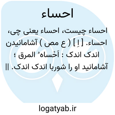 احساء. [ اِ ] ( ع مص ) آشامانیدن اندک اندک: اَحْساه ُ المرق؛ آشامانید او را شوربا اندک اندک. || بیاشامیدن. ( زوزنی ) ( تاج المصادر ).