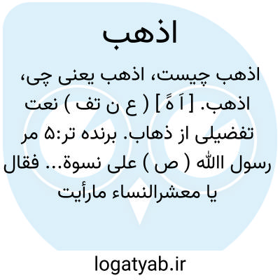 اذهب. [ اَ هََ ] ( ع ن تف ) نعت تفضیلی از ذهاب. برنده تر:5 مر رسول اﷲ ( ص ) علی نسوة... فقال یا معشرالنساء مارأیت نواقص عقول و دین اذهب بعقول ذوی الألباب منکن. ( مکارم الأخلاق طبرسی ).