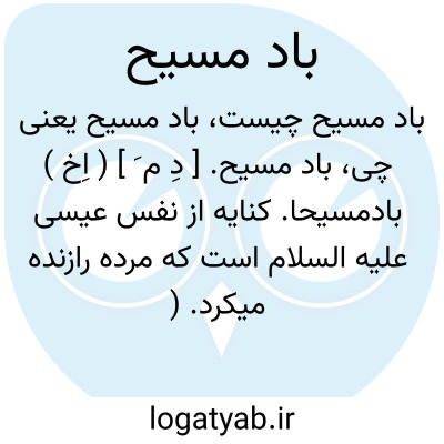 باد مسیح. [ دِ م َ ] ( اِخ ) بادمسیحا. کنایه از نفس عیسی علیه السلام است که مرده رازنده میکرد. ( برهان ). کنایه از دم مسیح که اموات راحیات می بخشید. ( غیاث ). کنایه از نفس عیسی علیه السلام است و آن معجزه ای بود که مرده را زنده میکرد. ( هفت قلزم ). بمعنی باد عیسی. واله هروی گوید: