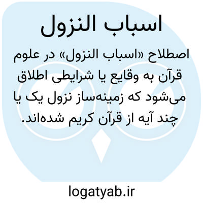 ( اسم ) آنچه سبب نزول آیات قر آنست. توضیح: علم اسباب النزول از فروع علم تفسیر قر آنست.