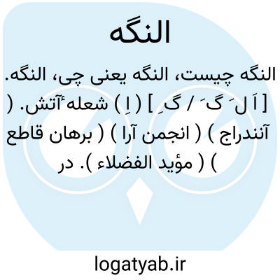 النگه. [ اَ ل َ گ َ / گ ِ ] ( اِ ) شعله ٔآتش. ( آنندراج ) ( انجمن آرا ) ( برهان قاطع ) ( مؤید الفضلاء ). در فرهنگ ناظم الاطباء النکه بکاف آمده است.
