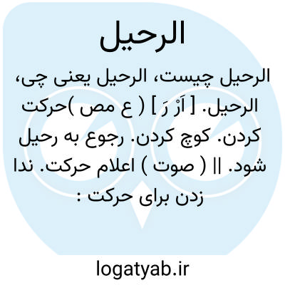 الرحیل. [ اَرْ رَ ] ( ع مص )حرکت کردن. کوچ کردن. رجوع به رحیل شود. || ( صوت ) اعلام حرکت. ندا زدن برای حرکت: