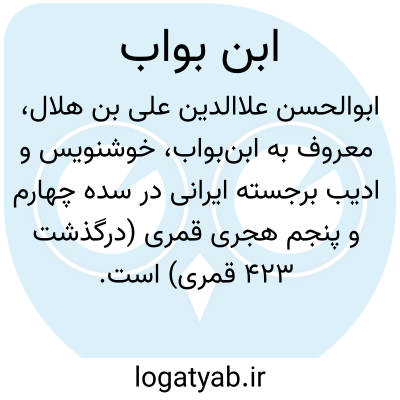 (نام اصلی: ابوالحسن علاء الدین علی بن هلال) خوشنویس و ادیب ایرانی. پدرش دربان و پرده دار آل بویه بود و به این مناسبت به او «ابن الستری» و «ابن البواب» گفته اند. از شاگردان ابن مقله، و نیز ابوعبدالله محمد بن اسد بغدادی، و ابوبکر احمد بن سلیمان نجاد بود. آثار اندکی از او باقی مانده است، ازجمله دیوان اشعار الحاوره، رساله ای از جاحظ، در موزۀ اسلامی استانبول، به خطوط ثلث و نسخ، و قرآنی که تاریخ ۳۹۱ق دارد و در کتابخانۀ چستربیتی دابلین (ایرلند) نگهداری می شود. او اصلاحاتی را نیز در خط نسخ به وجود آورد و شکل هایی از خط ثلث را وارد آن کرد، زیرا این خط تا دورۀ ابن مقله متأثر از قواعد خط محقق بود. ابن البواب به کتابت نویسی مشهور است و ۶۴ قرآن کتابت کرده است. نوشتن شانزده نوع خط را به او منسوب می دانند. اشعاری نیز در فن خط و لوازم آن سروده است.