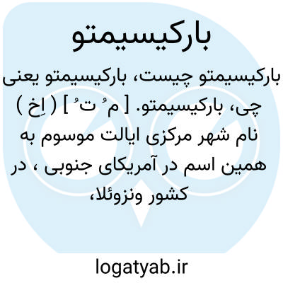 بارکیسیمتو. [ م ُ ت ُ ] ( اِخ ) نام شهر مرکزی ایالت موسوم به همین اسم در آمریکای جنوبی، در کشور ونزوئلا، در 145 کیلومتری از جنوب غربی النسیه. ( از قاموس الاعلام ترکی ج 2 ).