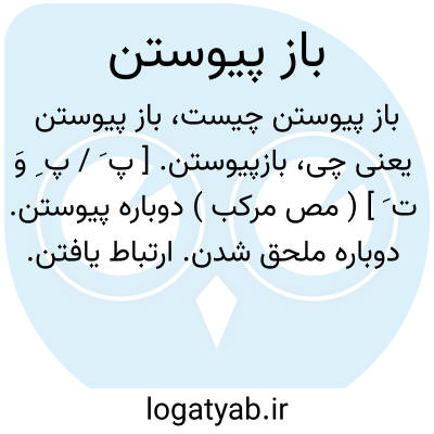 بازپیوستن. [ پ َ / پ ِ وَ ت َ ] ( مص مرکب ) دوباره پیوستن. دوباره ملحق شدن. ارتباط یافتن. مرتبط شدن:
