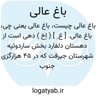 باغ عالی. [ غ ِ ] ( اِخ ) دهی است از دهستان دلفارد بخش ساردوئیه شهرستان جیرفت که در 45 هزارگزی جنوب خاوری سارودئیه به جیرفت واقع است و8 تن سکنه دارد. ( از فرهنگ جغرافیایی ایران ج 8 ).