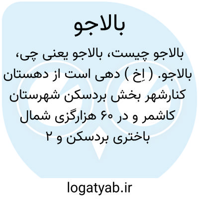 بالاجو. ( اِخ ) دهی است از دهستان کنارشهر بخش بردسکن شهرستان کاشمر و در 60 هزارگزی شمال باختری بردسکن و 2 هزارگزی جنوب شوسه عمومی بردسکن واقع است. ناحیه ایست کوهستانی و سردسیر و دارای 40 تن سکنه. آب آنجا از قنات تأمین میشود. محصول عمده آن غلات و لبنیات و زیره و انگور و شغل مردمش زراعت وراهش مالرو است. ( از فرهنگ جغرافیایی ایران ج 9 ).