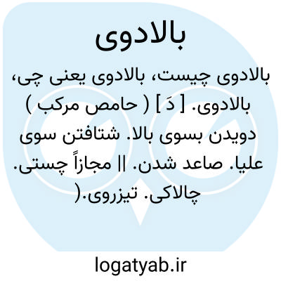 بالادوی. [ دَ ] ( حامص مرکب ) دویدن بسوی بالا. شتافتن سوی علیا. صاعد شدن. || مجازاً چستی. چالاکی. تیزروی.( آنندراج ). سرعت. شتاب. ( ناظم الاطباء ):