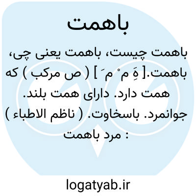 باهمت.[ هَِ م ْ م َ ] ( ص مرکب ) که همت دارد. دارای همت بلند. جوانمرد. باسخاوت. ( ناظم الاطباء ): مرد باهمت را فقر عذابی است الیم. ( تاریخ بیهقی چ ادیب ص 389 ). رجوع به همت شود.