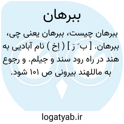 ببرهان. [ ب َ رَ ] ( اِخ ) نام آبادیی به هند در راه رود سند و جیلم. و رجوع به ماللهند بیرونی ص 101 شود.