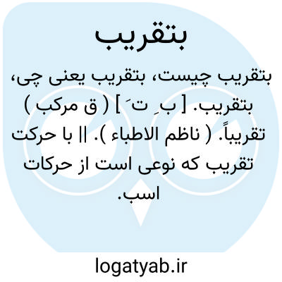 بتقریب. [ ب ِ ت َ ] ( ق مرکب ) تقریباً. ( ناظم الاطباء ). || با حرکت تقریب که نوعی است از حرکات اسب. رجوع به تقریب شود: