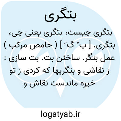 بتگری. [ ب ُ گ َ ] ( حامص مرکب ) عمل بتگر. ساختن بت. بت سازی: