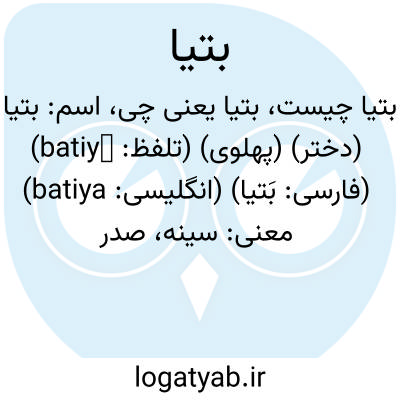 اسم: بتیا (دختر) (پهلوی) (تلفظ: batiyā) (فارسی: بَتيا) (انگلیسی: batiya)