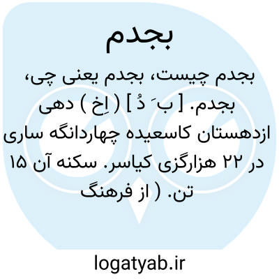بجدم. [ ب َ دُ ] ( اِخ ) دهی ازدهستان کاسعیده چهاردانگه ساری در 22 هزارگزی کیاسر. سکنه آن 15 تن. ( از فرهنگ جغرافیایی ایران ج 3 ).