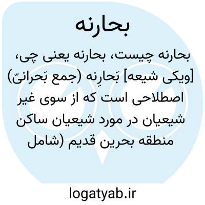 [ویکی شیعه] بَحارِنه (جمع بَحرانیّ) اصطلاحی است که از سوی غیر شیعیان در مورد شیعیان ساکن منطقه بحرین قدیم (شامل بحرین امروزی، احساء، قطیف، قطر و کویت) به کار رفته است.