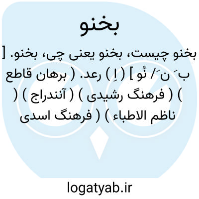 بخنو. [ ب َ ن َ/ نُو ] ( اِ ) رعد. ( برهان قاطع ) ( فرهنگ رشیدی ) ( آنندراج ) ( ناظم الاطباء ) ( فرهنگ اسدی نخجوانی ). تندر. ( فرهنگ رشیدی ):