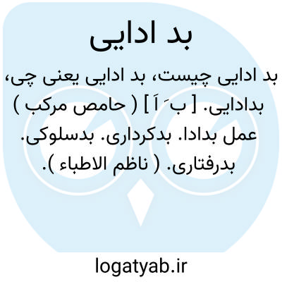 بدادایی. [ ب َ اَ ] ( حامص مرکب ) عمل بدادا. بدکرداری. بدسلوکی. بدرفتاری. ( ناظم الاطباء ). بدخویی. بدگوشتی. گوشت تلخی. ( از یادداشت مؤلف ): رعایا که تغار بر ایشان می نوشتند از دست ایشان بجان می رسیدند و مع هذا زیادت تغاری به لشکر نمی رسید و بعضی بسبب بدادایی متصرفان و بعضی بجهت آنکه بوکاولان خدمتی می گرفتند و... ( تاریخ غازانی ص 301 ).