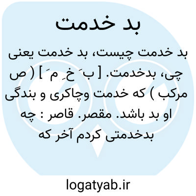 بدخدمت. [ ب َ خ ِ م َ ] ( ص مرکب ) که خدمت وچاکری و بندگی او بد باشد. مقصر. قاصر: