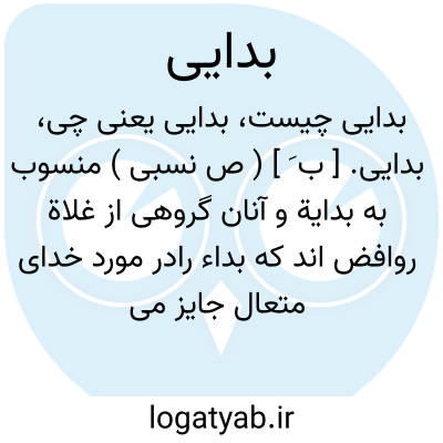 بدایی. [ ب َ ] ( ص نسبی ) منسوب به بدایة و آنان گروهی از غلاة روافض اند که بداء رادر مورد خدای متعال جایز می دانند. ( از کتاب الانساب سمعانی ورق 68 الف ). و رجوع به بداء و بدائیة شود.