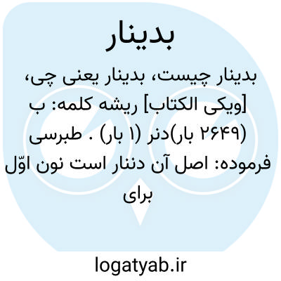 . طبرسی فرموده: اصل آن دننار است نون اوّل برای کثرت استعمال و سهولت تلفّظ، بیاء قلب شده راغب نیز چنین گفته است. در قاموس گوید: علّت قلب آن است که به مصادر مثل کذّاب (به کسر اوّل) ملتبس نشود در اقرب گفته: دینار قسمتی از پولهای قدیمی است و فارسی معرّب و اصل آن دنّار است بدلیل آنکه جمع آن دنانیر میآید. آیة اللّه در عروة الوثقی در زکوة نقدین فرموده: دینار یک مثقال شرعی طلاست و آن سه ربع مثقال صیرفی ست. به نظر میآید مراد از آن در آیه شریفه پول اندک است نه دینارشرعی. یعنی از اهل کتاب بعضی هست که اگر او را بر یک دینار امین کنی به تو ردّ نمیکند مگر آنکه پیوسته به مطلب بر او ایستاده باشی این کلمه فقط یکبار در قرآن یافته است.