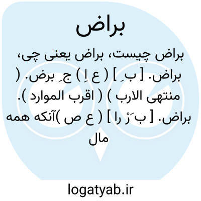 لغت نامه دهخدا براض. [ ب ِ ] ( ع اِ ) ج ِ برض. ( منتهی الارب ) ( اقرب الموارد ).براض. [ ب َرْ را ] ( ع ص )آنکه همه مال خود خرد و تباه کند. ( منتهی الارب ).براض. [ ب ُ ] ( ع ص ) مُبرض. اندک. ( آنندراج ) ( منتهی الارب ). قلیل. بَرْض. ( اقرب الموارد ).