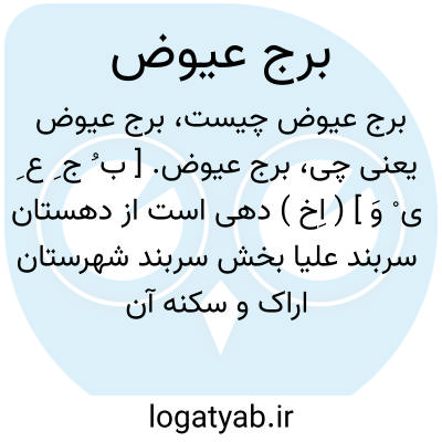 برج عیوض. [ ب ُ ج ِ ع ِ ی ْ وَ ] ( اِخ ) دهی است از دهستان سربند علیا بخش سربند شهرستان اراک و سکنه آن 238 تن است. ( از فرهنگ جغرافیایی ایران ج 2 ).