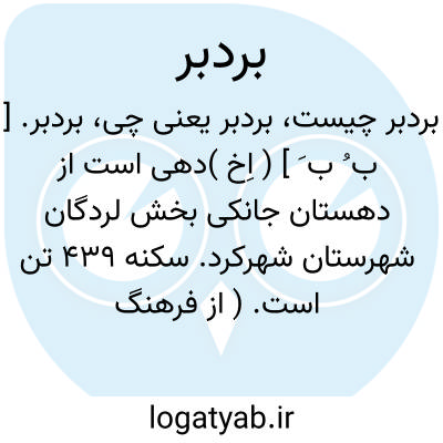 بردبر. [ ب ُ ب َ ] ( اِخ )دهی است از دهستان جانکی بخش لردگان شهرستان شهرکرد. سکنه 439 تن است. ( از فرهنگ جغرافیایی ایران ج 10 ).