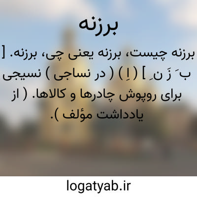 برزنه. [ ب َ زَ ن ِ ] ( اِ ) ( در نساجی ) نسیجی برای روپوش چادرها و کالاها. ( از یادداشت مؤلف ).