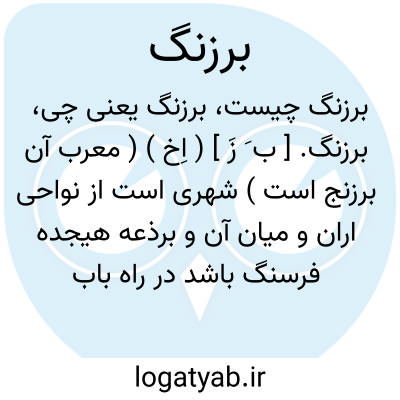 برزنگ. [ ب َ زَ ] ( اِخ ) ( معرب آن برزنج است ) شهری است از نواحی اران و میان آن و برذعه هیجده فرسنگ باشد در راه باب الابواب و بر او معبر نهر کبراست به شروان. ( مراصد الاطلاع ).