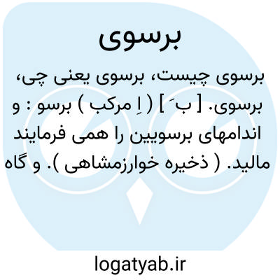 برسوی. [ ب َ ] ( اِ مرکب ) برسو: و اندامهای برسویین را همی فرمایند مالید. ( ذخیره خوارزمشاهی ). و گاه باشد که بر پلک برسویین بدر آید و گاه باشد بر پلک فرو سویین. ( ذخیره خوارزمشاهی ). رجوع به برسو شود.