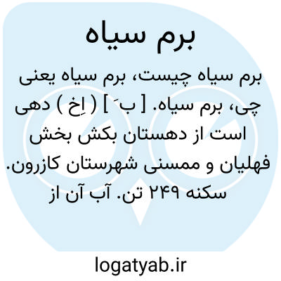 برم سیاه. [ ب َ ] ( اِخ ) دهی است از دهستان بکش بخش فهلیان و ممسنی شهرستان کازرون. سکنه 249 تن. آب آن از چشمه ومحصول آن غلات است. ( از فرهنگجغرافیایی ایران ج 7 ).