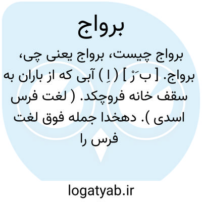 برواج. [ ب َرْ ] ( اِ ) آبی که از باران به سقف خانه فروچکد. ( لغت فرس اسدی ). دهخدا جمله فوق لغت فرس را چنین تصحیح کرده اند: آب باران که از سقف خانه فروچکد.