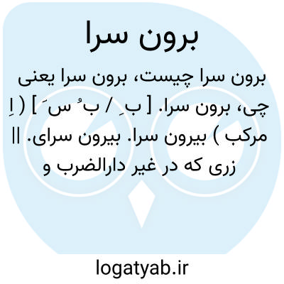 برون سرا. [ ب ِ / ب ُ س َ ] ( اِ مرکب ) بیرون سرا. بیرون سرای. || زری که در غیر دارالضرب و ضرابخانه سکه کرده باشند. ( برهان ) ( ناظم الاطباء ). پول قلب و بد که در غیر دارالضرب سکه زده باشند.