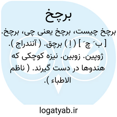 برچخ. [ ب َ چ َ ] ( اِ ) برچق. ( آنندراج ). ژوپین. زوبین. نیزه کوچکی که هندوها در دست گیرند. ( ناظم الاطباء ). برچه. نیزه کوچک که اغلب مردم هندوستان دارند. ( آنندراج ) ( انجمن آرا ). ژوبین است و آن نیزه ای است نه دراز و نه کوتاه. ( برهان ):